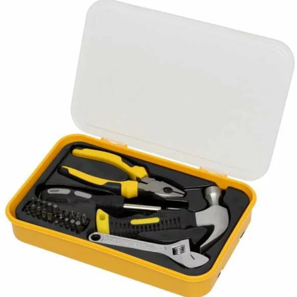 Dieses 24-teilige Werkzeugset bietet alle wichtigen Handwerkzeuge für den Alltag – perfekt für Haushalt, Werkstatt oder unterwegs im Auto. Im robusten, kompakten Kunststoffkoffer finden Sie alles, was Sie für Reparaturen und Wartungsarbeiten benötigen. Dank der praktischen Größe lässt sich das Set einfach transportieren und platzsparend verstauen.