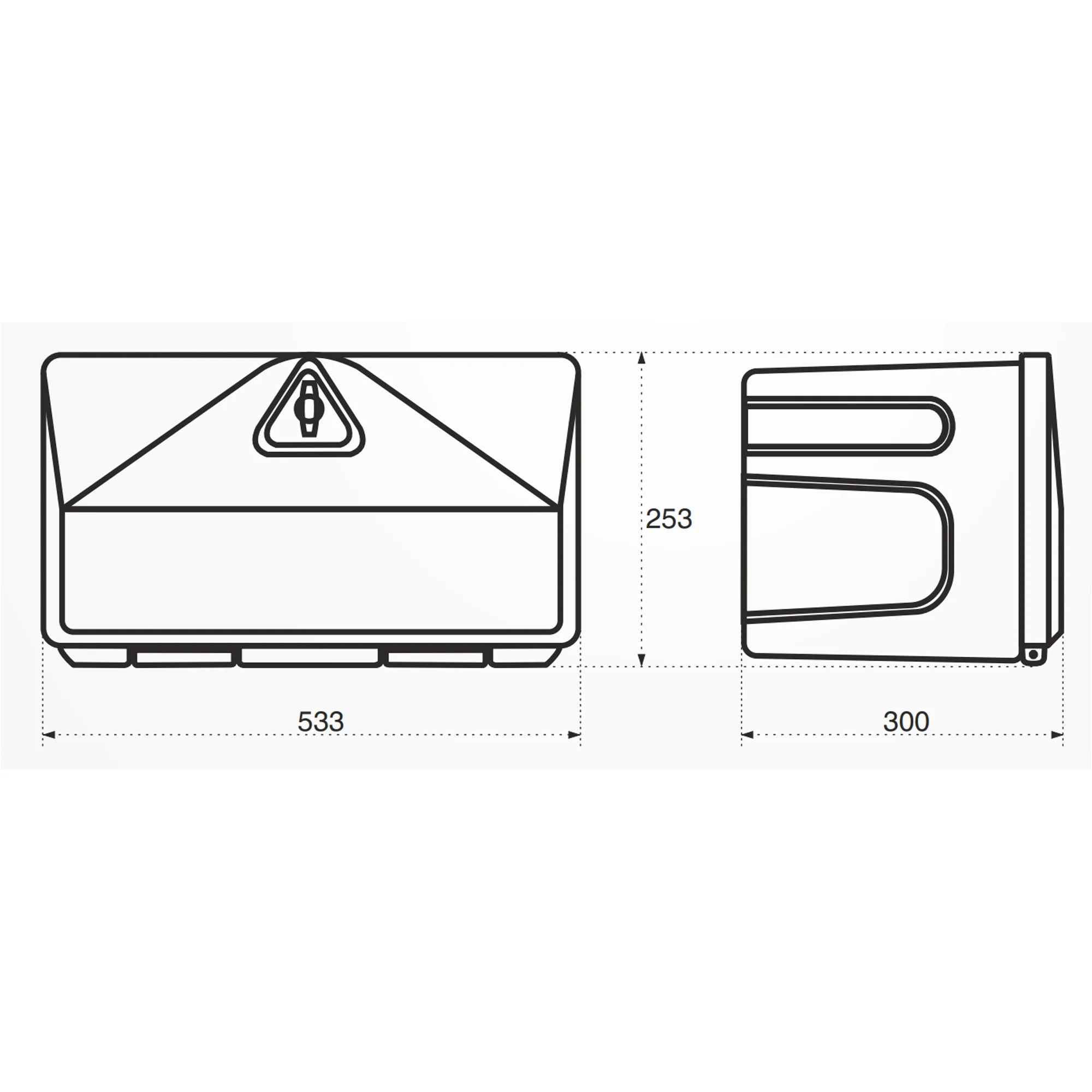 • 533 x 253 x 300 mm (30 L, bis 30 kg belastbar, 3 kg Eigengewicht)