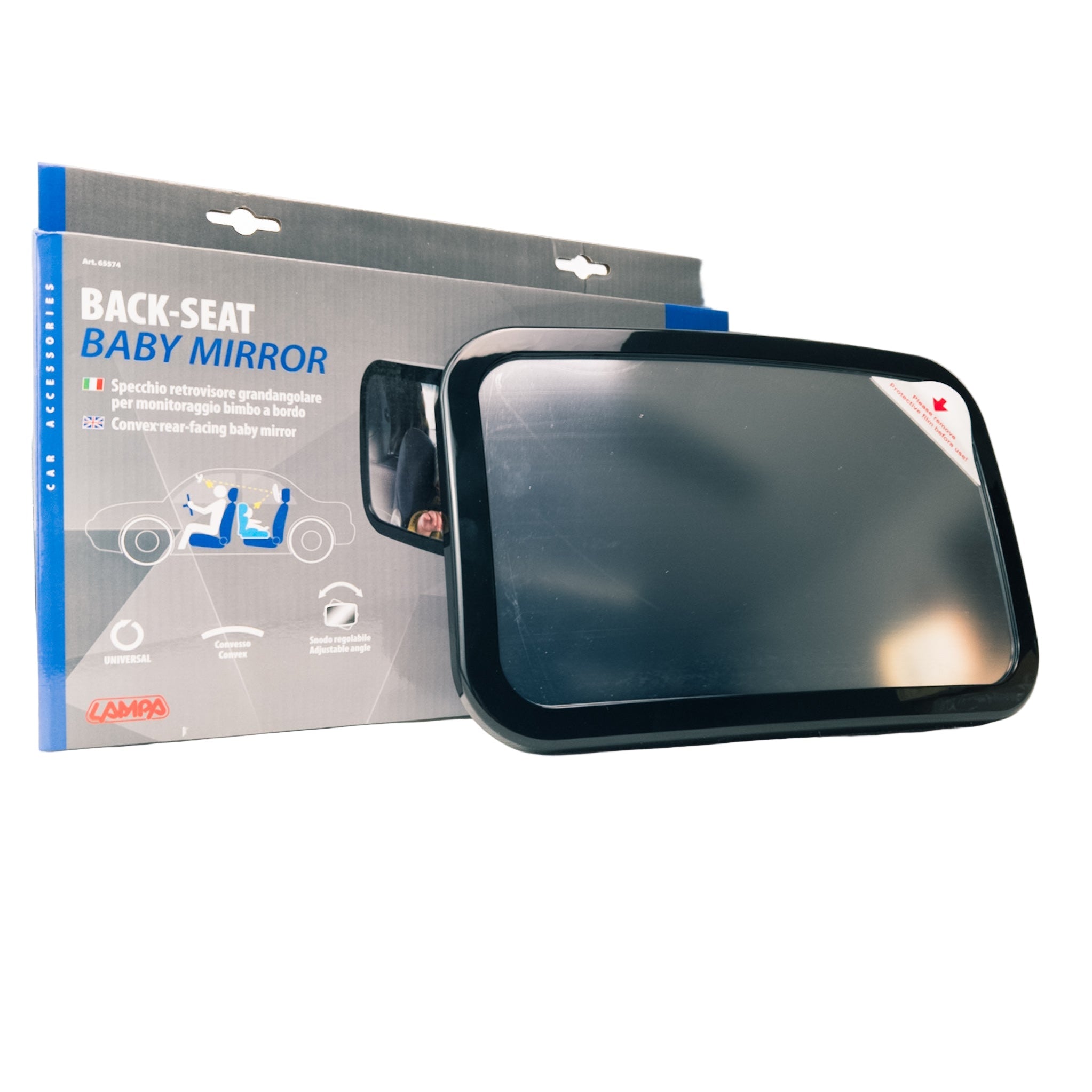 Behalten Sie Ihr Kind während der Autofahrt immer im Blick – mit dem extraweiten Baby-Rückspiegel von Lampa.