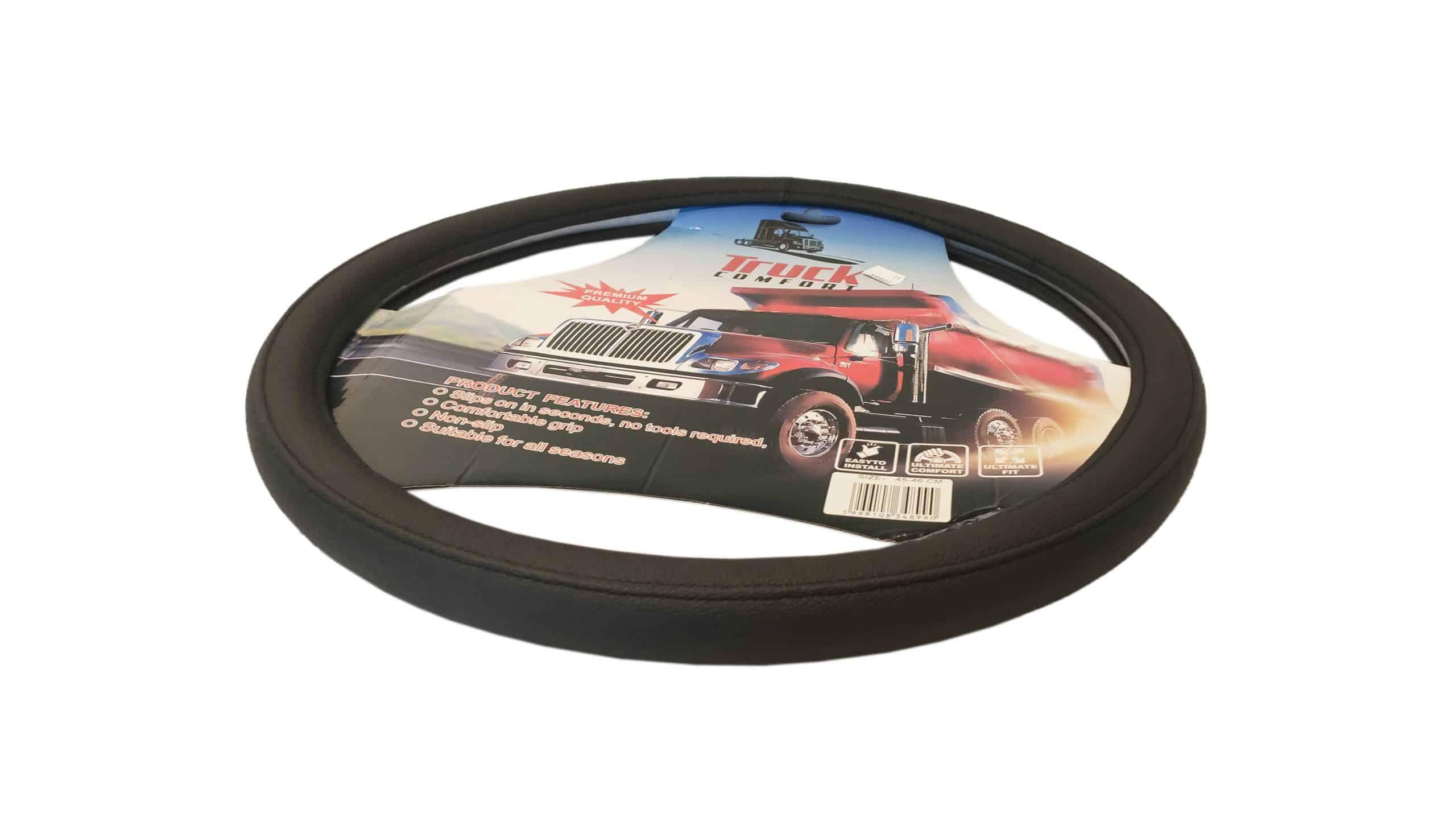 Upgrade your truck’s cabin with a leather-effect steering wheel cover. Enjoy a secure, comfortable grip and long-lasting protection. Available in several sizes and colors. Read more