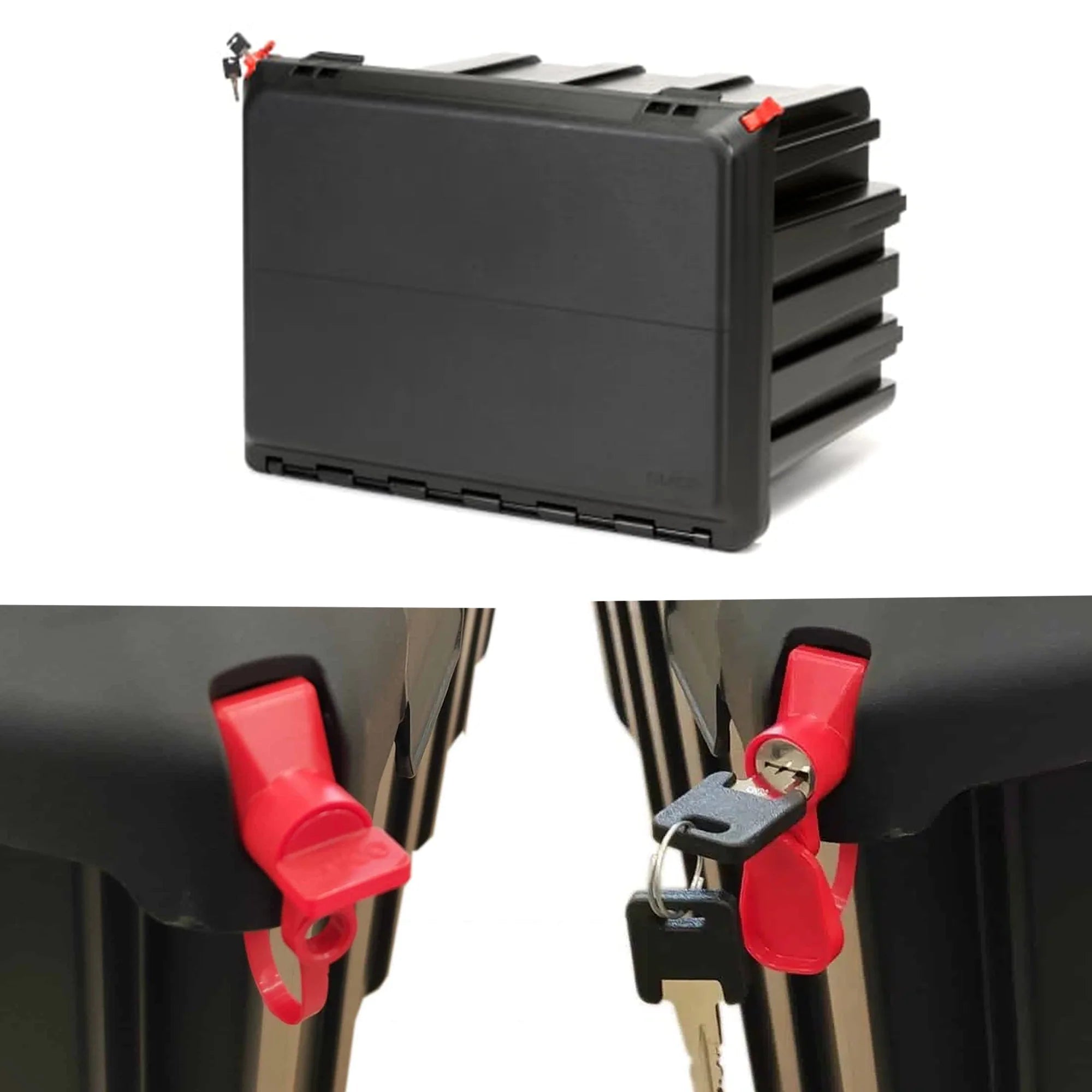 The LAGO hermetically sealed plastic tool box is a premium storage solution for trucks and lorries, available in multiple sizes to meet your exact needs. Crafted from UV-stabilized polypropylene copolymer, this box offers outstanding durability and weather resistance, ensuring your tools stay protected in any environment. The secure, lockable design keeps your equipment safe—choose from two optional locking systems (available separately): a simple twist-lock or a key lock for enhanced security. With a scratch- and impact-resistant surface, this toolbox is built for heavy-duty use. It also features original mounting compatibility for side underrun protection compliant with ECE 73R01 standards.